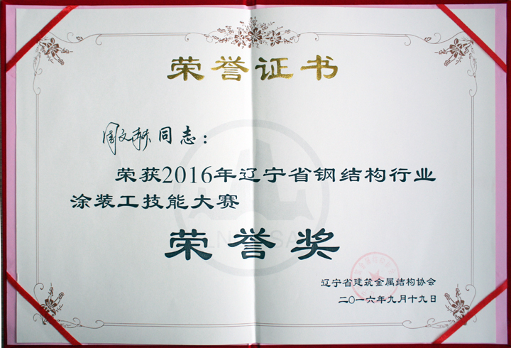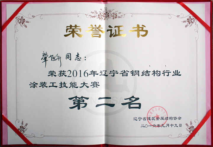 2016年9月19日,由遼寧省建筑金屬結(jié)構(gòu)協(xié)會主辦的遼寧省鋼結(jié)構(gòu)行業(yè)涂裝工技能大賽圓滿落幕。來自全省10家企業(yè)的20名選手參加了最后的決賽。我公司鋼構(gòu)生產(chǎn)部技工肇旭升獲得第二名的好成績,周文赫獲得榮譽(yù)獎(jiǎng)。