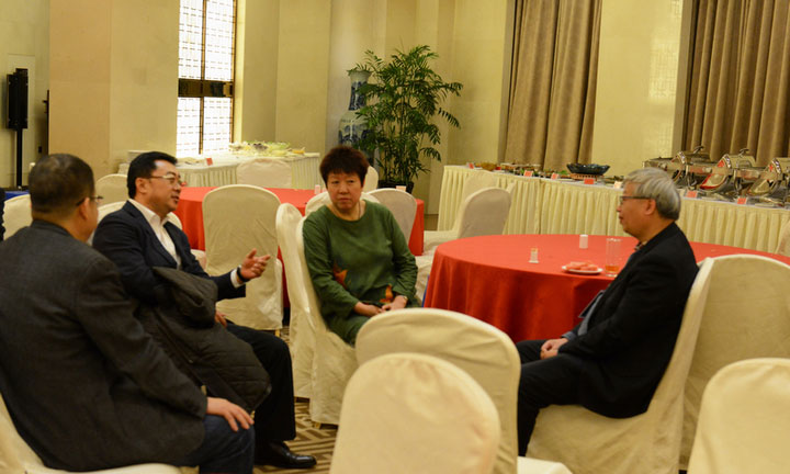 ▲洪長禧會長與杭蕭鋼構(gòu)副總裁、著名專家方鴻強(qiáng)交流