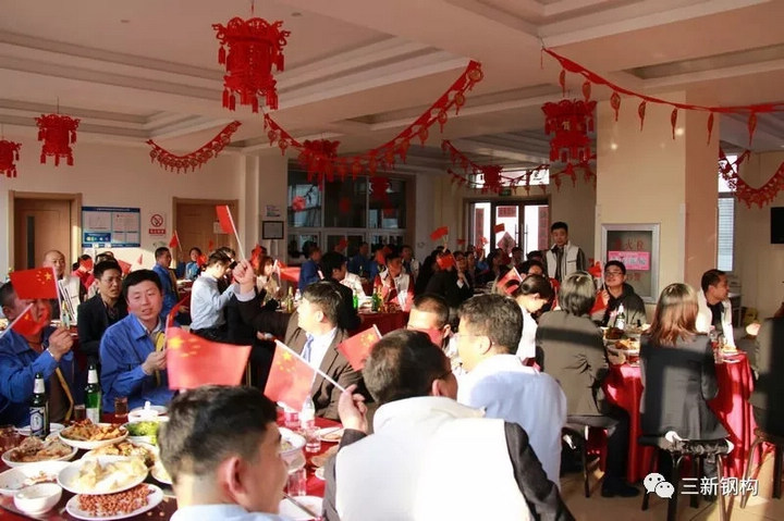 三新生產(chǎn)基地張燈結(jié)彩,喜氣洋洋,空氣中彌漫著喜慶。綜合辦公樓正面懸掛的四條巨幅條幅格外醒目。寫出了三新的成就和憧憬,三新的自信和決心。
