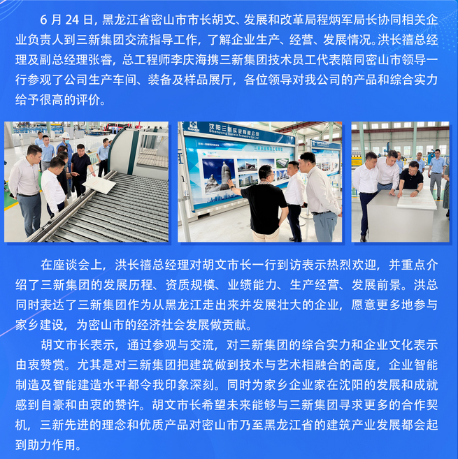 同根同源,共謀發(fā)展——黑龍江省密山市市長胡文一行赴三新集團調研交流工作