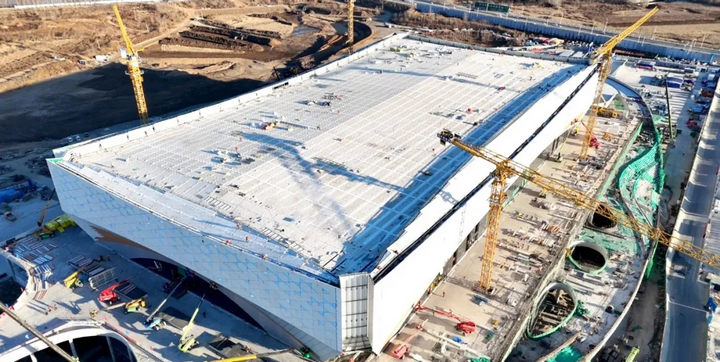 秋碧如洗的渾河之畔,“云上冰玉” 正以出水芙蓉之姿亭亭玉立。這座總建筑面積達(dá) 26.38 萬(wàn)平方米的冰上巨構(gòu),將 “城市與自然共生” 的理念凝于鋼筋鐵骨,其中 13.57 萬(wàn)平方米的國(guó)家速滑館更以流線型弧面勾勒出渾河的靈動(dòng) —— 空中俯瞰,三新實(shí)業(yè)打造的屋面恰似鎏金鳳冠,在北國(guó)陽(yáng)光下流轉(zhuǎn)著技術(shù)與藝術(shù)交融的光芒。