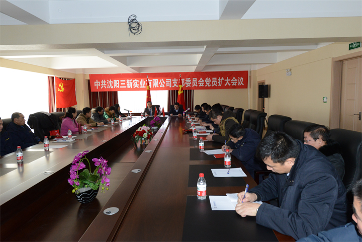 2014年12月13日上午9:30,中共沈陽(yáng)三新實(shí)業(yè)有限公司支部委員會(huì)黨員擴(kuò)大會(huì)議在廠區(qū)綜合辦公樓四樓會(huì)議室召開(kāi)。會(huì)議公布了本年展黨員名單,新黨員進(jìn)行了表態(tài)發(fā)言;會(huì)議討論并確定了明年發(fā)展黨員計(jì)劃;全體參會(huì)人員一同學(xué)習(xí)了黨章內(nèi)容。黨支部書(shū)記洪長(zhǎng)禧總經(jīng)理以“在公司工作中如何發(fā)揮黨員先進(jìn)模范帶頭作用“為題做了主旨發(fā)言。最后由黨支部書(shū)記于東云董事長(zhǎng)領(lǐng)誓,新黨員向黨旗宣誓并進(jìn)行佩戴黨徽儀式。通過(guò)本次會(huì)議,全體參會(huì)人員受到了一次愛(ài)黨教育及思想的洗禮。